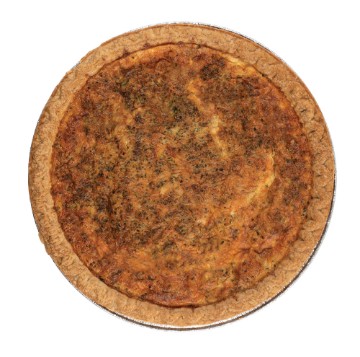 Tomato Basil with Mozzarella, classic Lorraine with Swiss, Broccoli with Cheddar, Vegetable with Monterey Jack or Spinach with Monterey Jack. Must be reheated before serving.