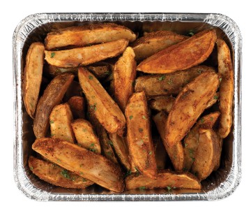 Golden brown fried Potato Wedges tossed with Oil & Cajun Seasoning Must be reheated before serving. Serves 10-12