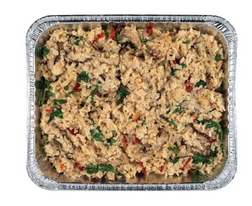 Rice slow simmered in Vegetable Stock with folded in Goat Cheese, Shiitake Mushrooms & Sundried Tomatoes - topped with fresh Arugula Must be reheated before serving, Serves 18-20