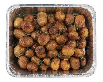 Petite, oven-roasted Fingerlings tossed with Olive Oil, Oregano, Parsley, Parmesan Cheese, Salt & Pepper Must be reheated before serving. Serves 10-12