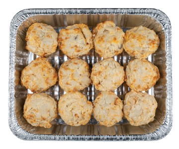 Potato skins stuffed with Potatoes, Cheddar Cheese, Milk, Chives, Salt & Pepper - topped with more Cheese & baked Must be reheated before serving. Serves 8